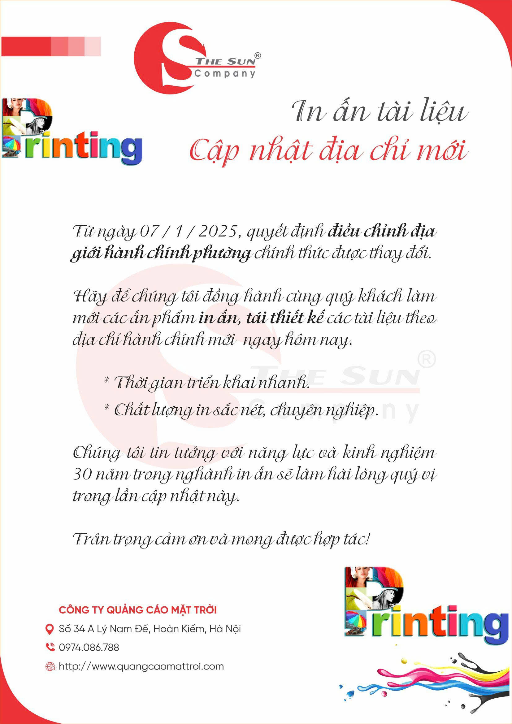 Thư mời in ấn các sản phẩm văn phòng theo địa chỉ hành chính mới cập nhật ngày 1/7/2025